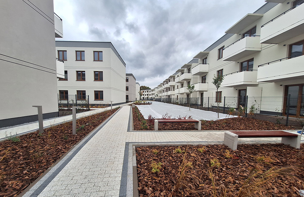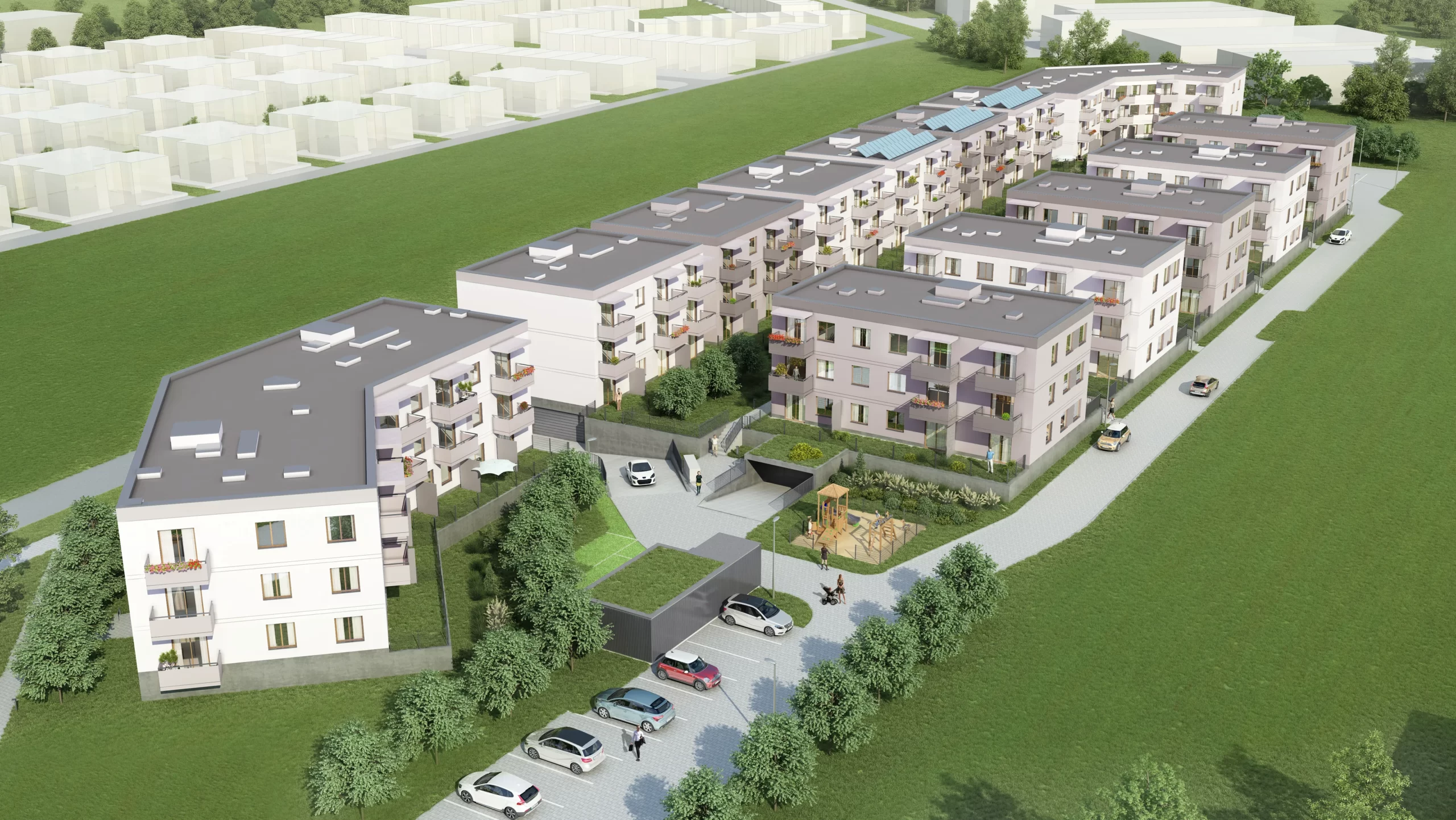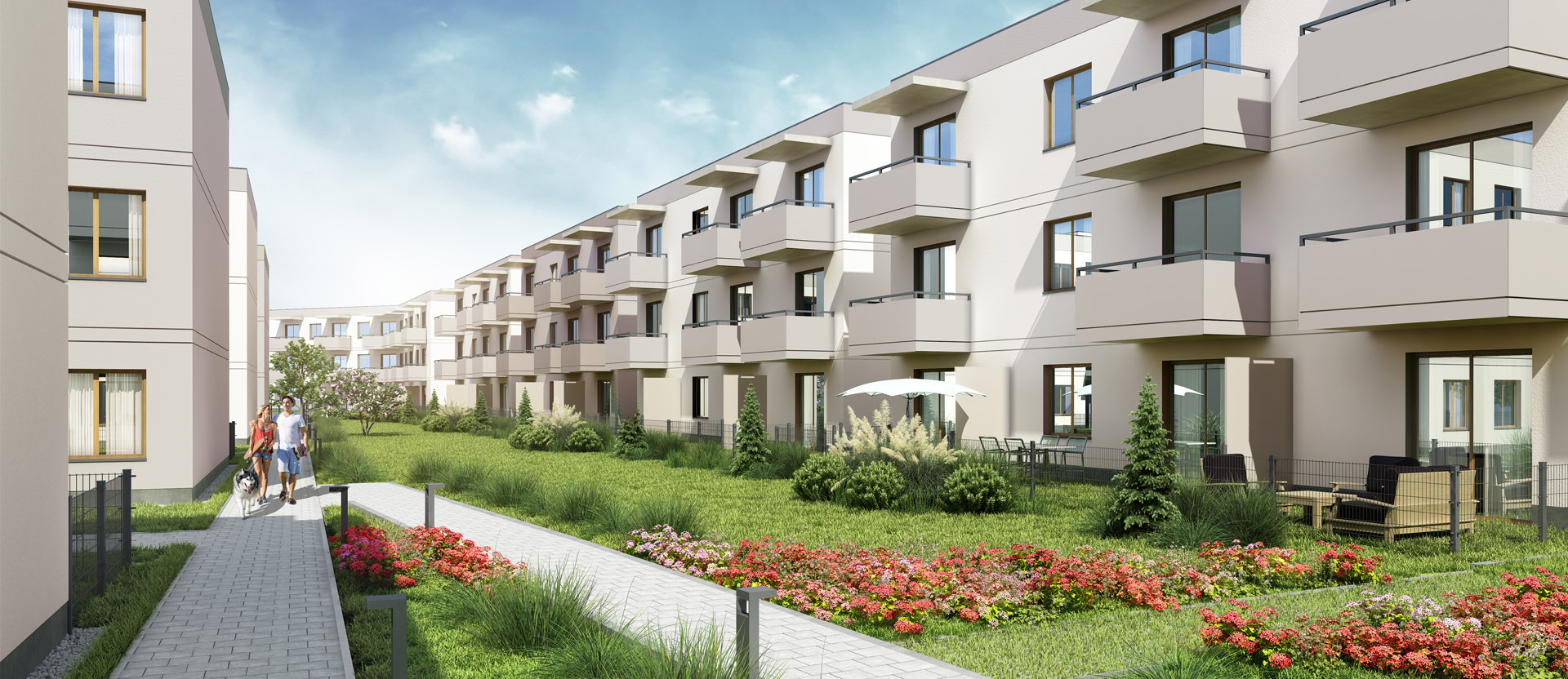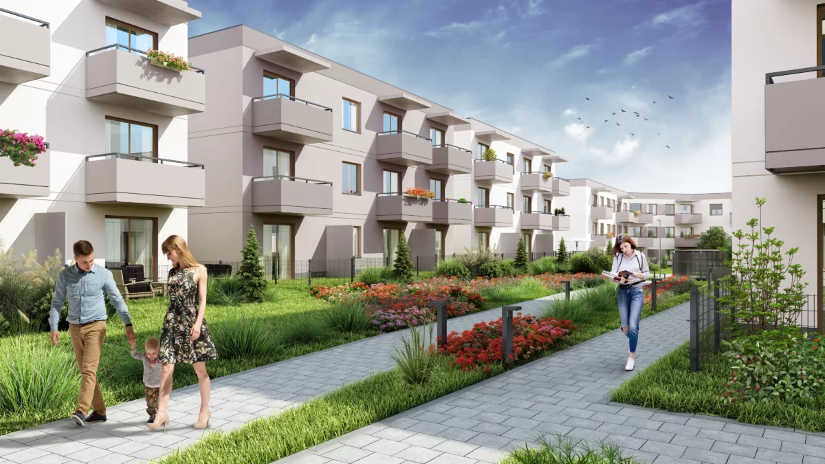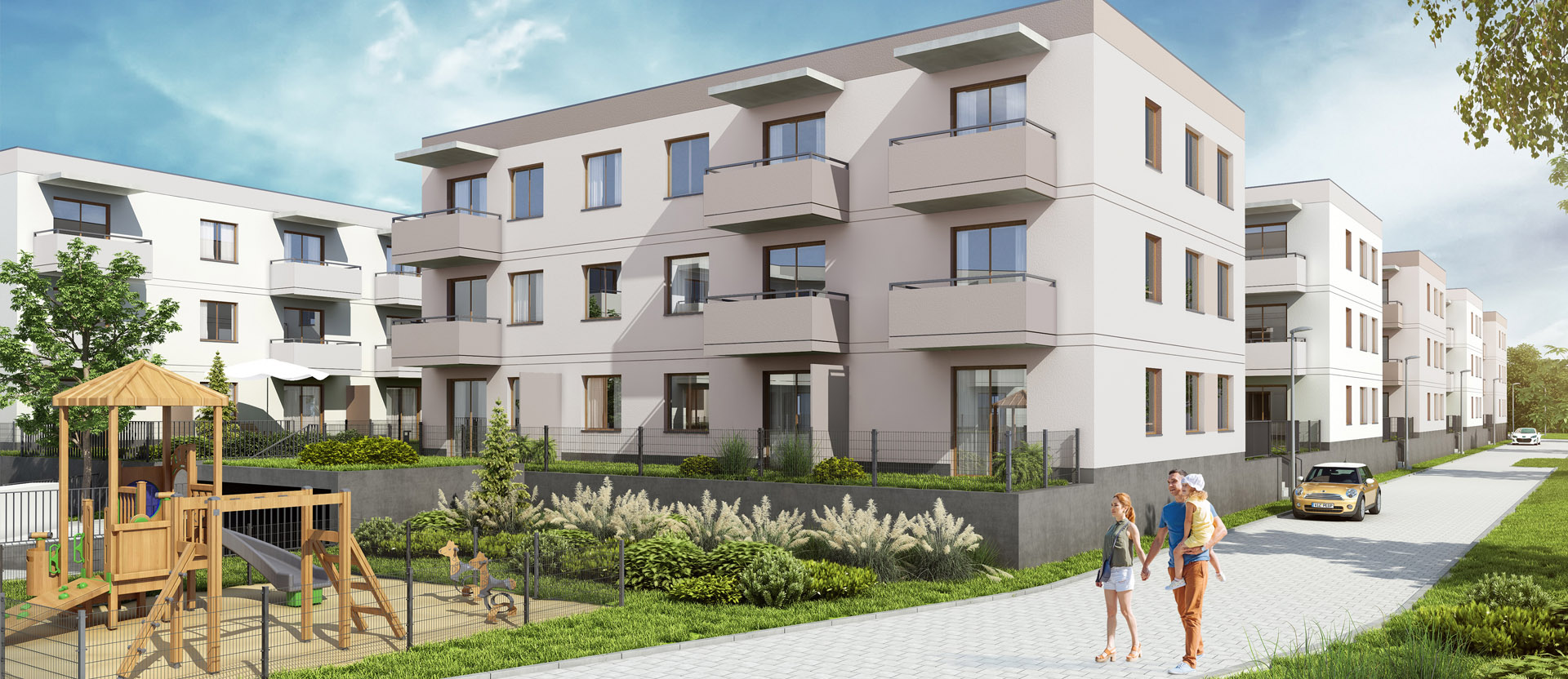Osiedle będzie się składać z 13 kameralnych budynków w niskiej, dwupiętrowej zabudowie.